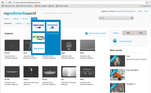The Portal Hunt Authoring Tool (PH AT) is a web-based application hosted at MyMultimediaWorld (http://www.MymultimediaWorld.com). MyMultimediaWorld is a web-based public platform that offers a complete multimedia content diffusion service supporting images, 3D objects, videos, sound and games under the MPEG-4 format. More than showcasing MPEG technologies for media representation, compression, streaming, interaction, MyMultimediaWorld.com is a platform that offers APIs (Application Programming Interface) allowing the users to integrate their own extraction algorithms using the MyMultimediaWorld resources to create enriched content such as games and courseware, among others. The specificity of the PH AT is that the output is an MPEG-4 file that contains the entire game behavior and the corresponding media assets. The file can be visualized by using MPEG-4 compliant player. Internal decoding libraries made possible to transparently decode MPEG-4 supporting different resolutions.